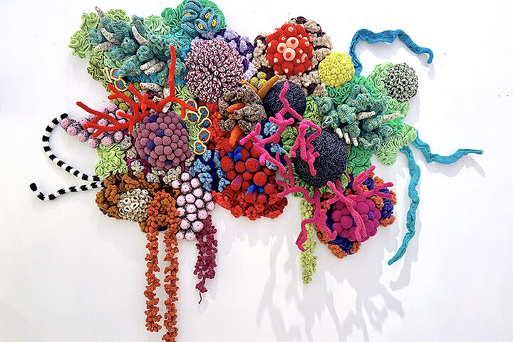 Harmony 34 has the opportunity to become part of our permanent collection. With its vivid colors, tactile knit and crocheted corals, Harmony 34 invites wonder and reflection while conveying the beauty and biodiversity of ocean reefs. “As one of the first artworks by a living artist from Southeast Asia to enter the Eskenazi Museum’s collection,” says Pamela Buell Curator of Asian Art Natasha Kimmet, “Harmony 34 would allow us to tell richer stories across global artmaking traditions and cultures, while also relating to Indiana’s own geological history and limestone legacy.”